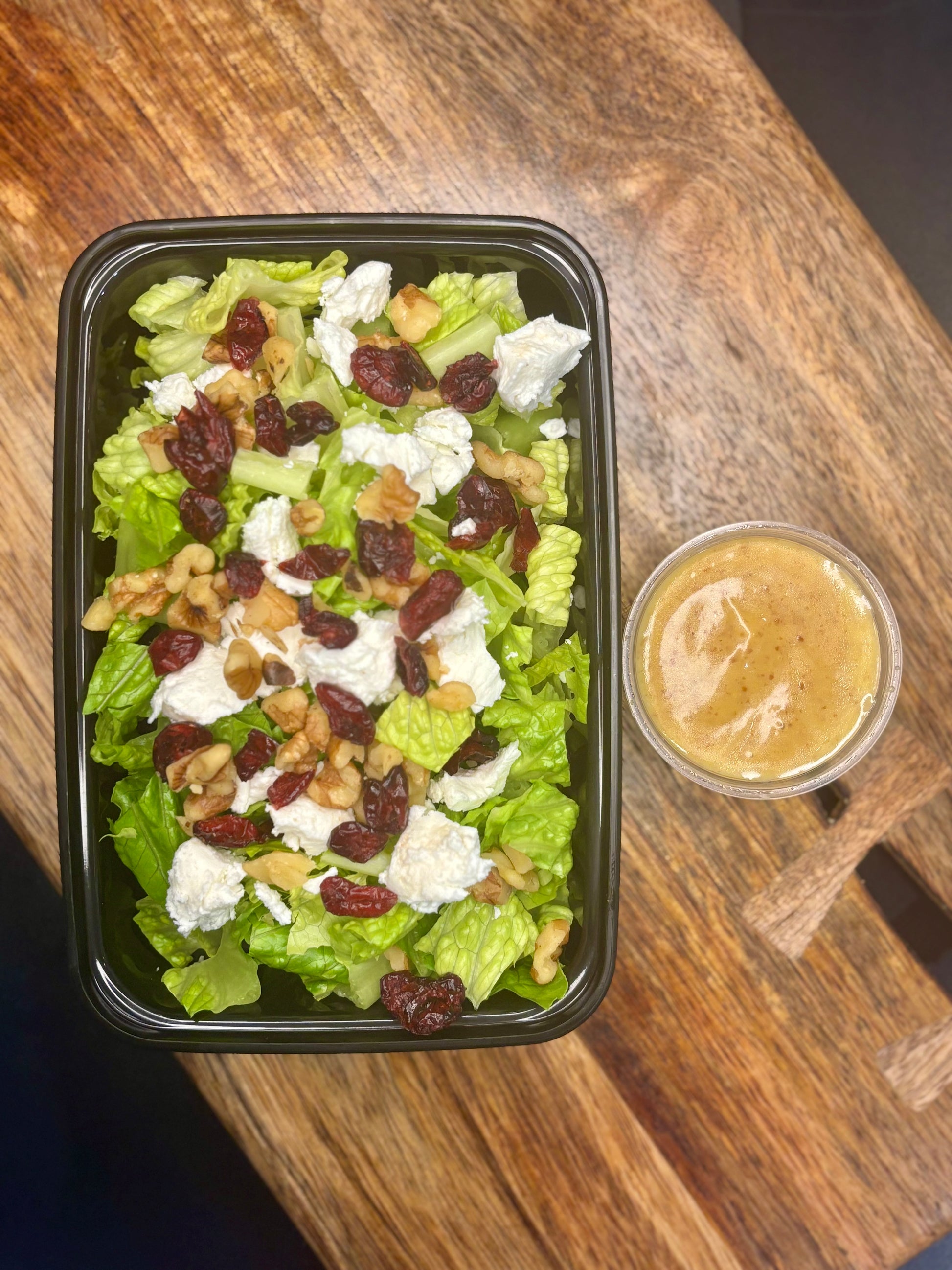 Romaine, Goat Cheese, Walnut Pieces, Dried Cranberries & Mustard Vinaigrette